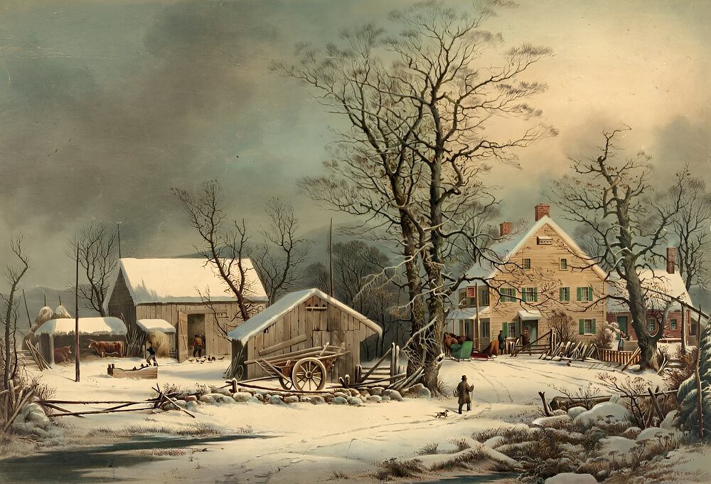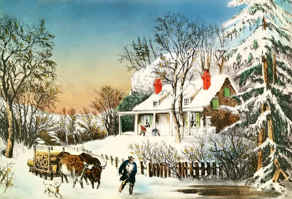 Bringing Home the Logs, Winter Landscape, 19th century (colour litho) by Currier, N. (1813-88) and Ives, J.M. (1824-95); colour lithographThe Farmers Home - Summer, 1864Salmon Branch, Granby Connecticut, 1869The Trout PoolThe Return From The WoodsThe Road - Winter by Otto Knirsch, published by Currier and Ives, 1853Hero and Flora Temple, 1856Western River Scenery, 1866Echo Lake, White Mountains c. 1875American Homestead Winter. Published by Currier & Ives, 1868Three Jolly KittensThe levee, New Orleans, 1884The Falls of Niagara-From the Canada side, 1868Winter in the Country. Published by Currier & Ives, c1863The Drew Grand SaloonThe Boston Tea PartyThe American FiremanWinter morning in the country. Published by Currier & Ives, c1873Sailor departure Black-eyed SusanRobinson Crusoe and man Friday, 1874Off for the war, 1861Home in the wilderness. Published by Currier & Ives, c1870A mansion of the olden time. Published by Currier & Ives, between 1856 and 1907New York showing Equitable Life buildingMorning in the Woods, 1835Life in the Country - EveningWashington crossing the Delaware on the evening of Dec 25th. 1776, previous to the battle of Trenton. Published by Currier & Ives, c1876Kiss-me-quick, 1840sGrand, national, temperance banner - dedicated to every son & daughter of temperance, throughout the unionHunting, Fishing and Forest ScenesFriendship love and truthFlora Temple (famous racehorse)Central Park by Currier & Ives, 1862Brooklyn Bridge - connecting the cities of New York and Brooklyn, looking west, 1883American Homestead SpringAmerican Homestead AutumnAmerican Homestead SummerA Home on the Mississippi1883 battery detail of City of New YorkWest Point Hudson River, NY, c 1900New York and Brooklyn, with Jersey City and Hoboken water front, 1875The City of Chicago, c. 1874Washington City from the new dome of the Capitol, looking east, 1892The City of San Francisco, 1878The New York yacht club regatta, 1869The Lincoln Family, (published 1867)The harvest moon, c 1870The fruits of temperance, 1848