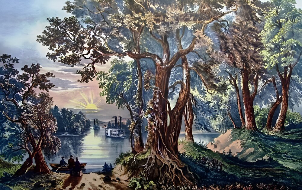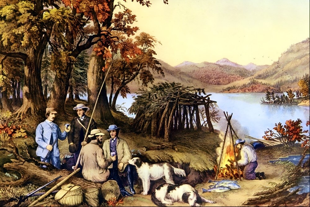 Currier and Ives made prints from paintings by fine artists as black and white lithographs that were then colored by hand.