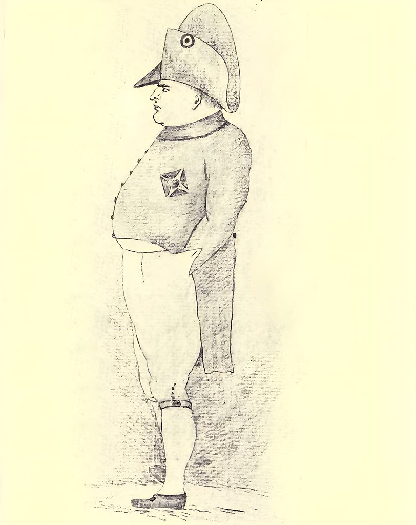 Napoleon's person I was very desirous of seeing, but on doing so, I was disappointed. His figure is bad, he is short with a large head, his hands and legs small, and his body so corpulent as to project very considerably, his coat made very plain, as you see it in most prints, and from being very short in the back it gives his figure a more ridiculous appearance than it has naturally. His profile is good ... but his full face is bad. His eyes are a light blue, heavy and totally contrary to what I had expected, his teeth are bad ... His face at one moment bears the stamp of good humour and again immediately changes to a dark, penetrating, thoughtful scowl denoting the character of the thought that excites it. He speaks quick, and runs from one subject to another with great rapidity. His knowledge is extensive and very various, and he surprised me much by his remembrance of men of every character in England.